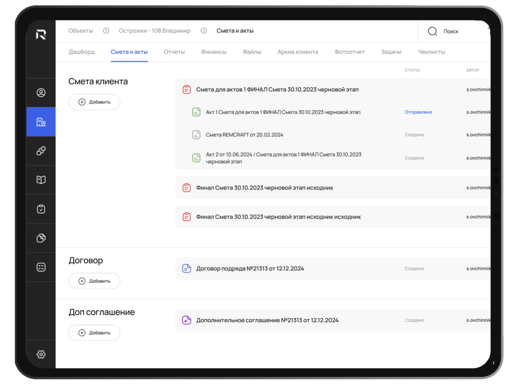Объекты в процессе