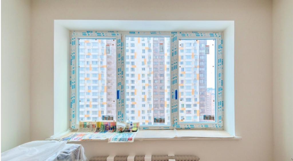 По периметру коробки для пароизоляции прокладывают фольгированный материал. Следует оставлять зазор между оконным блоком и коробкой, учитывая усадку стен дома. Зазор заполняют утеплителем и с обоих сторон закрывают наличниками. Раму фиксируют с помощью длинных саморезов, вкручиваемых в древесину сквозь просверленные отверстия в профиле. Саморезы вкручивать с чрезмерным усилием не допускается.
