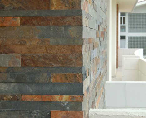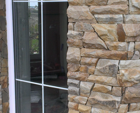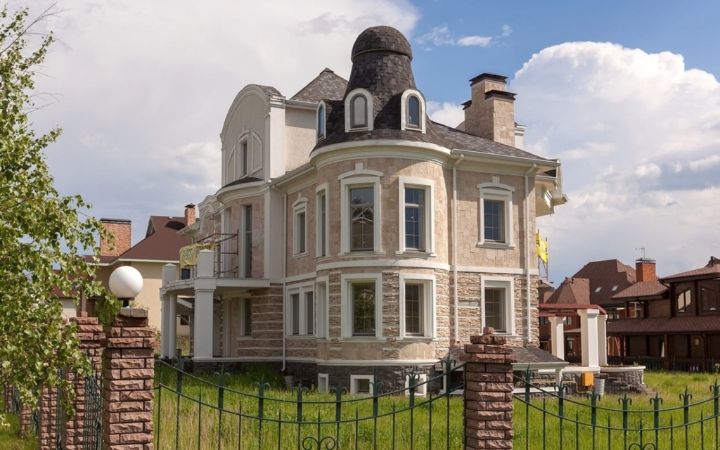Каменные вставки для фасада частного дома представлены в нескольких форматах исполнения и с разной текстурой поверхности. Чтобы обеспечить покрытию долгий срок службы, поверхность стен заранее проверяется на показатель влажности и прочности. Также, имеет значение ровность и чистота стен, допустимый предел перепада поверхности – 2 см на м2.